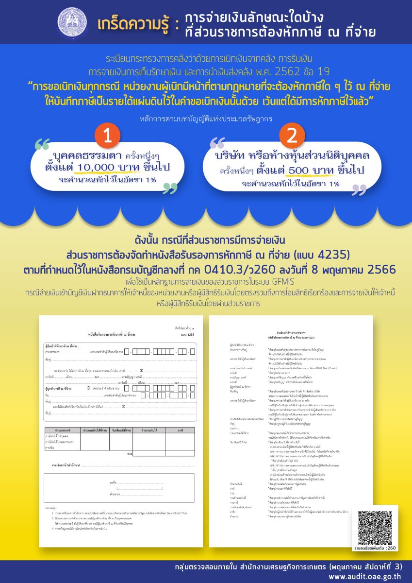 การเบิกจ่ายเกร็ดความรู้ การจ่ายเงินลักษณะใดบ้างที่ส่วนราชการต้องหักภาษี ณ ที่จ่าย Admin2 สัปดาห์ ago01 mins แนะแนวเรื่อง Previous: เกร็ดความรู้ การปรับเปลี่ยนหลักเกณฑ์การเบิกจ่ายตรง ค่ายารักษามะเร็งNext: เกร็ดความรู้ เรื่อง New GFMIS Thai – ระบบการเงินใหม่ที่ต้องรู้ ใส่ความเห็น ยกเลิกการตอบอีเมลของคุณจะไม่แสดงให้คนอื่นเห็น ช่องข้อมูลจำเป็นถูกทำเครื่องหมาย *ความเห็น * ชื่อ * อีเมล * เว็บไซต์ บันทึกชื่อ, อีเมล และชื่อเว็บไซต์ของฉันบนเบราว์เซอร์นี้ สำหรับการแสดงความเห็นครั้งถัดไป