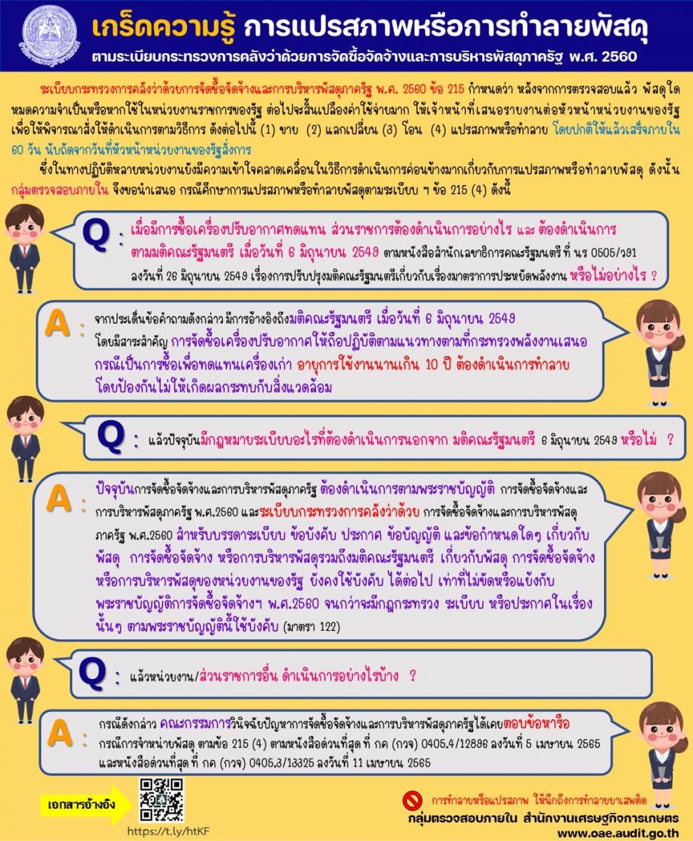 เกร็ดความรู้ การแปรสภาพหรือการทำลายพัสดุ ตามระเบียบกระทรวงการคลังว่าด้วยการจัดซื้อจัดจ้างและการบริหารพัสดุภาครัฐ พ.ศ. 2560