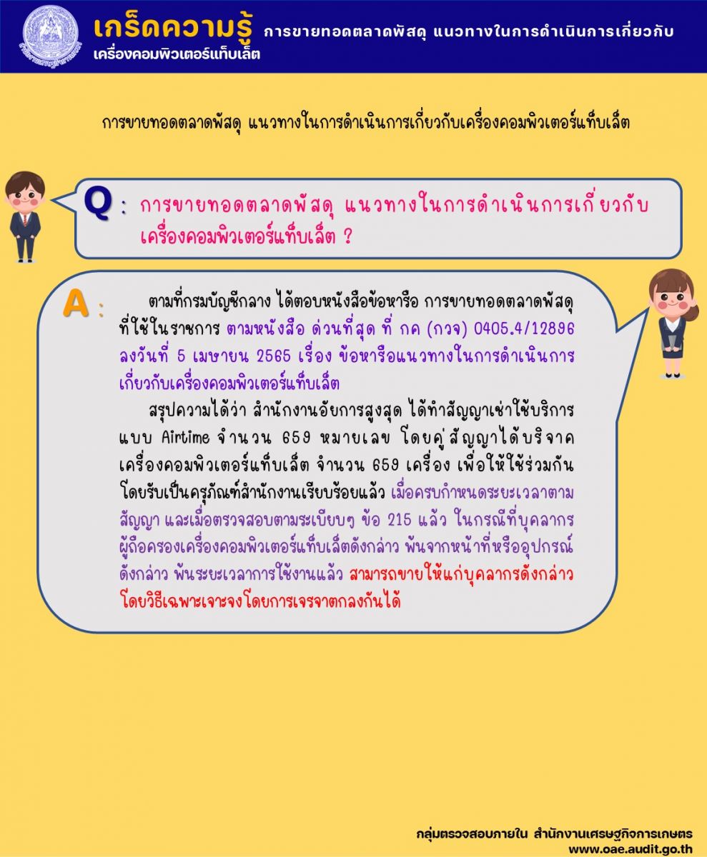 ด้านการจัดซื้อจัดจ้างเกร็ดความรู้ การขายทอดตลาดพัสดุ แนวทางในการดำเนินการเกี่ยวกับเครื่องคอมพิวเตอร์แท็บเล็ต Admin1 สัปดาห์ ago01 mins แนะแนวเรื่อง Previous: เกร็ดความรู้ การแปรสภาพหรือการทำลายพัสดุ ตามระเบียบกระทรวงการคลังว่าด้วยการจัดซื้อจัดจ้างและการบริหารพัสดุภาครัฐ พ.ศ. 2560Next: การจำหน่ายอุปกรณ์อิเล็กทรอนิกส์ ใส่ความเห็น ยกเลิกการตอบอีเมลของคุณจะไม่แสดงให้คนอื่นเห็น ช่องข้อมูลจำเป็นถูกทำเครื่องหมาย *ความเห็น * ชื่อ * อีเมล * เว็บไซต์ บันทึกชื่อ, อีเมล และชื่อเว็บไซต์ของฉันบนเบราว์เซอร์นี้ สำหรับการแสดงความเห็นครั้งถัดไป