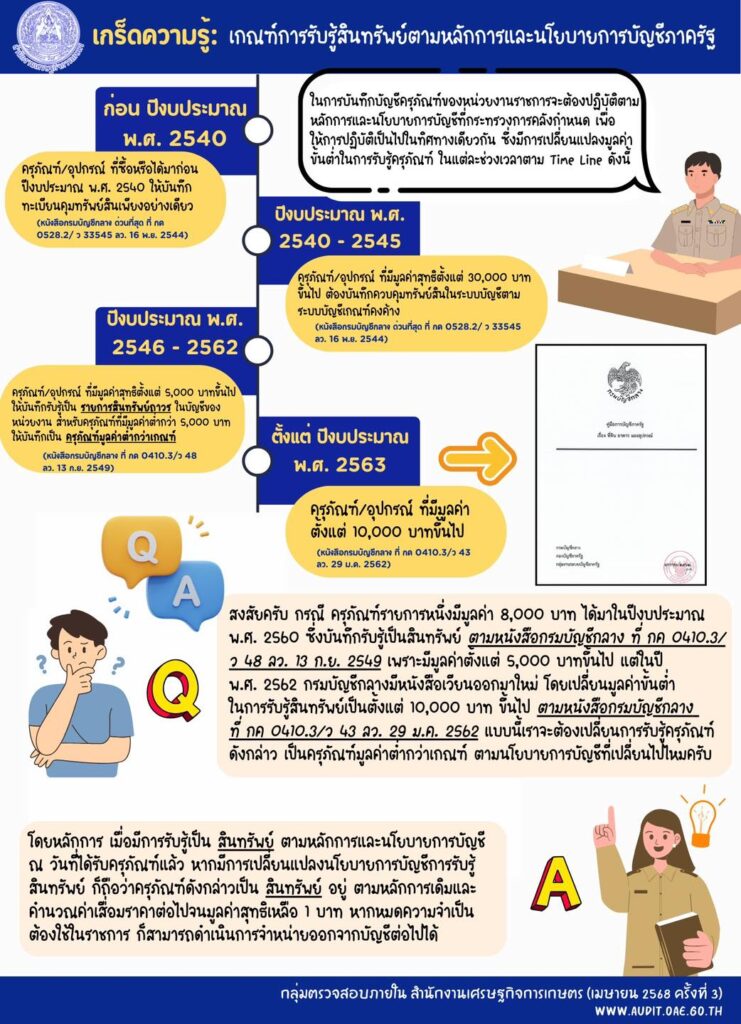 ด้านการจัดซื้อจัดจ้างเกร็ดความรู้ เรื่อง เกณฑ์การรับรู้สินทรัพย์ตามหลักการและนโยบายการบัญชีภาครัฐ Admin1 สัปดาห์ ago01 mins แนะแนวเรื่อง Previous: เกร็ดความรู้ เรื่อง กรณีเกิดการสูญหายหรือเสียหายขึ้นกับรถยนต์ส่วนกลางจะต้องทำอย่างไรNext: เมื่อมีผู้บริจาคทรัพย์สินส่วนราชการต้องทำอย่างไร ใส่ความเห็น ยกเลิกการตอบอีเมลของคุณจะไม่แสดงให้คนอื่นเห็น ช่องข้อมูลจำเป็นถูกทำเครื่องหมาย *ความเห็น * ชื่อ * อีเมล * เว็บไซต์ บันทึกชื่อ, อีเมล และชื่อเว็บไซต์ของฉันบนเบราว์เซอร์นี้ สำหรับการแสดงความเห็นครั้งถัดไป
