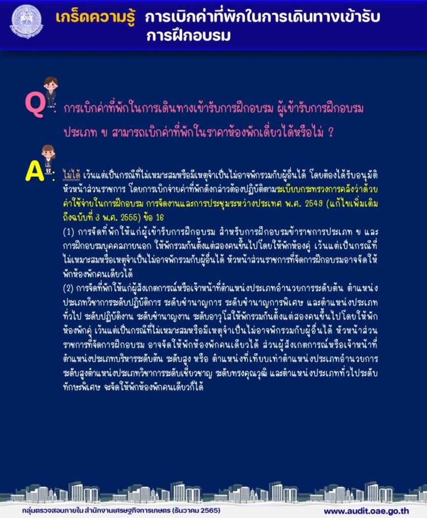 ค่าใช้จ่ายในการฝึกอบรมเกร็ดความรู้ การเบิกค่าที่พักในการเดินทางเข้ารับการฝึกอบรม ผู้เข้ารับการฝึกอบรม ประเภท ข สามารถเบิกค่าที่พักในราคาห้องพักเดี่ยวได้หรือไม่ Admin1 สัปดาห์ ago01 mins แนะแนวเรื่อง Previous: เกร็ดความรู้ หลักสูตรการอบรมกำหนดระยะเวลาในการอบรมจำนวน 3 วัน สามารถดำเนินการได้หรือไม่ อย่างไรNext: เกร็ดความรู้ ผู้จัดฝึกอบรมเป็นวิทยากร ใส่ความเห็น ยกเลิกการตอบอีเมลของคุณจะไม่แสดงให้คนอื่นเห็น ช่องข้อมูลจำเป็นถูกทำเครื่องหมาย *ความเห็น * ชื่อ * อีเมล * เว็บไซต์ บันทึกชื่อ, อีเมล และชื่อเว็บไซต์ของฉันบนเบราว์เซอร์นี้ สำหรับการแสดงความเห็นครั้งถัดไป