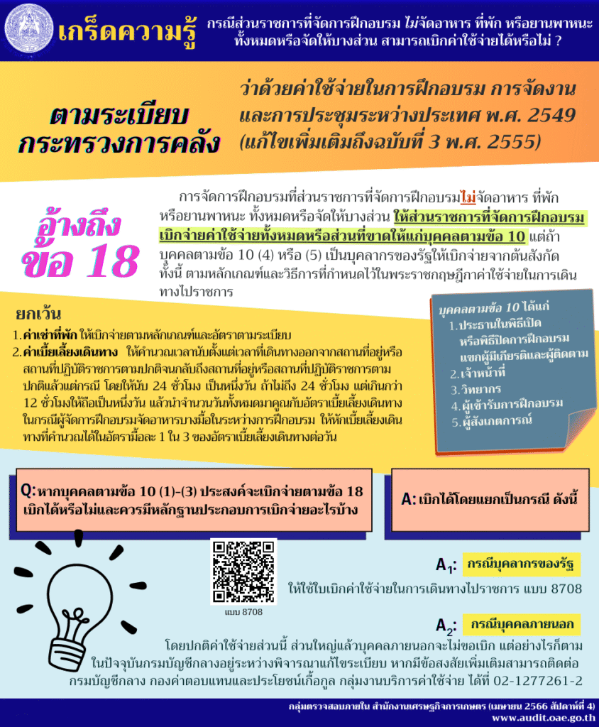 ค่าใช้จ่ายในการฝึกอบรมเกร็ดความรู้ กรณีส่วนราชการที่จัดการฝึกอบรม ไม่จัดอาหาร ที่พัก หรือยานพาหนะทั้งหมดหรือจัดในบางส่วน สามารถเบิกค่าใช้จ่ายได้หรือไม่ Admin1 สัปดาห์ ago01 mins แนะแนวเรื่อง Previous: เกร็ดความรู้ การจ่ายค่าตอบแทนวิทยากรที่หน่วยงานผู้จัดNext: เกร็ดความรู้ การจ่ายค่าสมนาคุณวิทยากร ใส่ความเห็น ยกเลิกการตอบอีเมลของคุณจะไม่แสดงให้คนอื่นเห็น ช่องข้อมูลจำเป็นถูกทำเครื่องหมาย *ความเห็น * ชื่อ * อีเมล * เว็บไซต์ บันทึกชื่อ, อีเมล และชื่อเว็บไซต์ของฉันบนเบราว์เซอร์นี้ สำหรับการแสดงความเห็นครั้งถัดไป